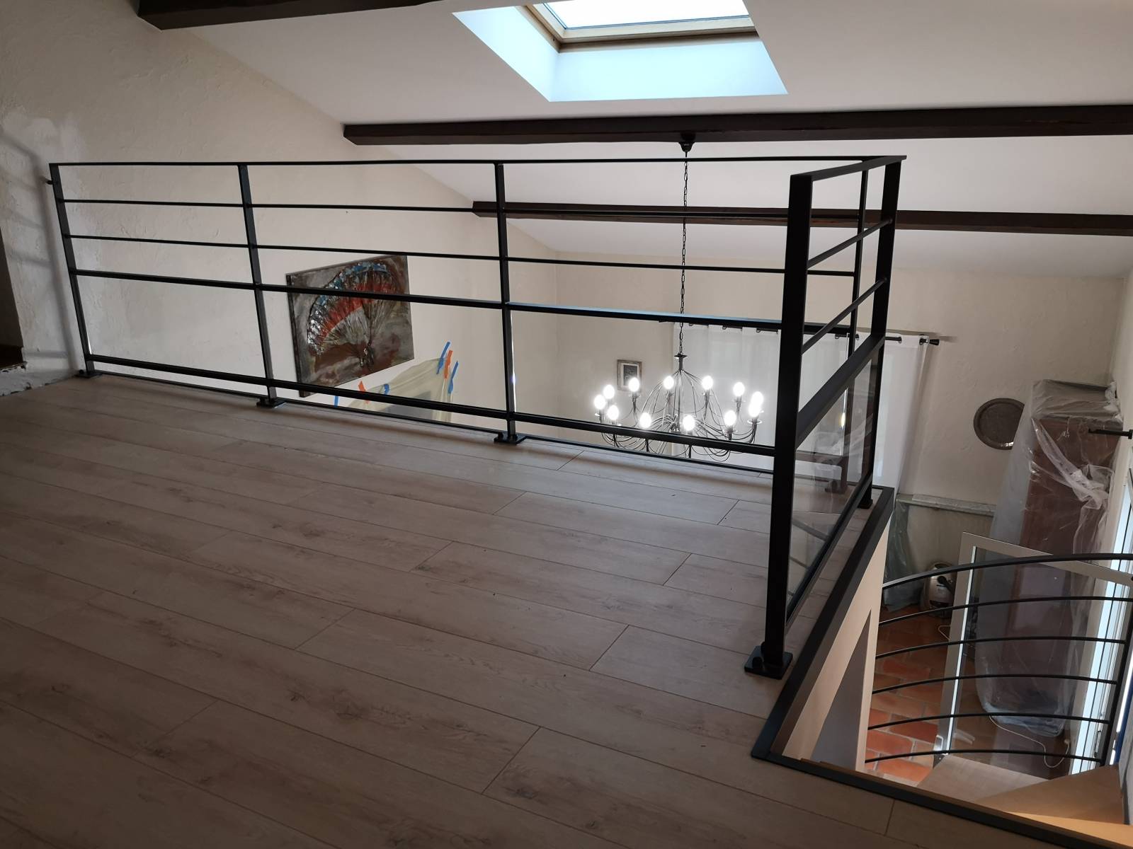 Fabrication et pose de garde-corps en acier et verre sur une mezzanine dans la commune de Vourles