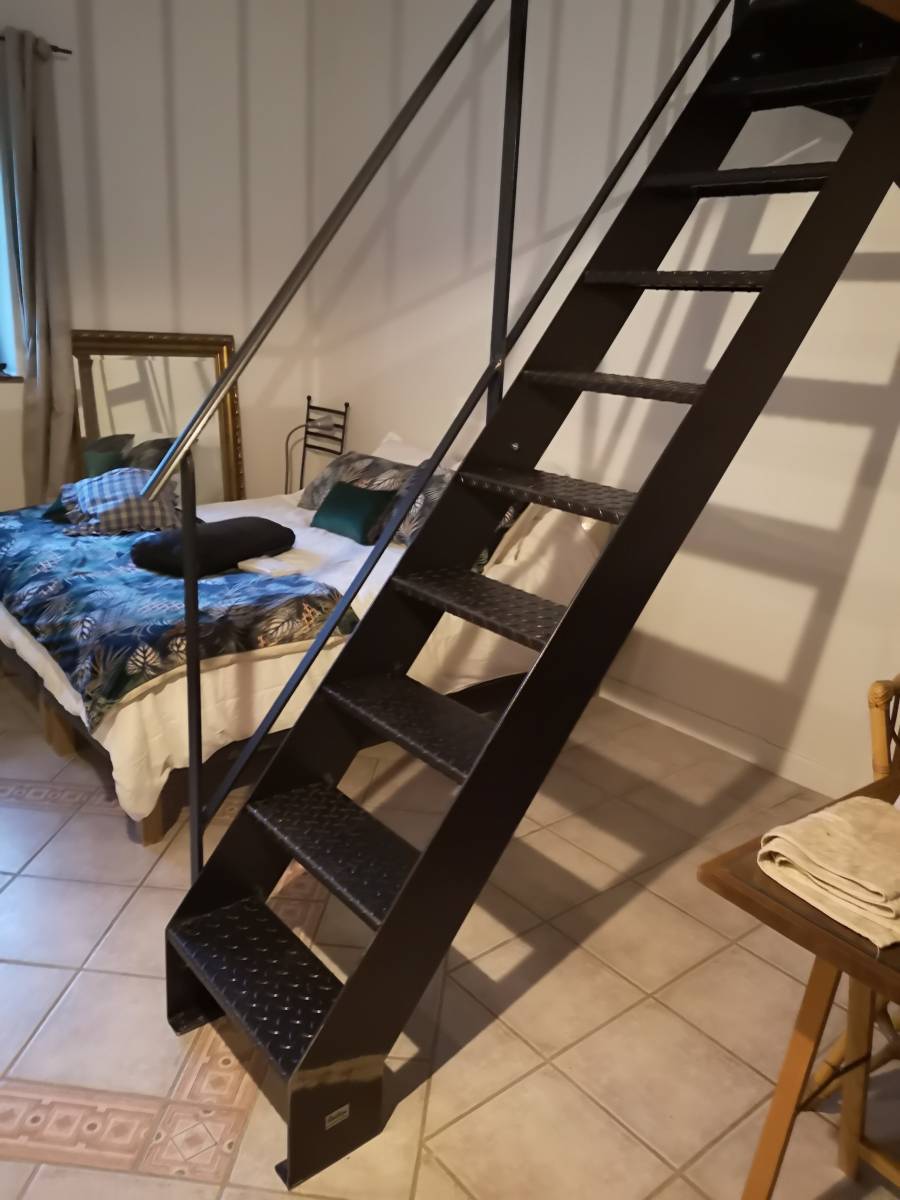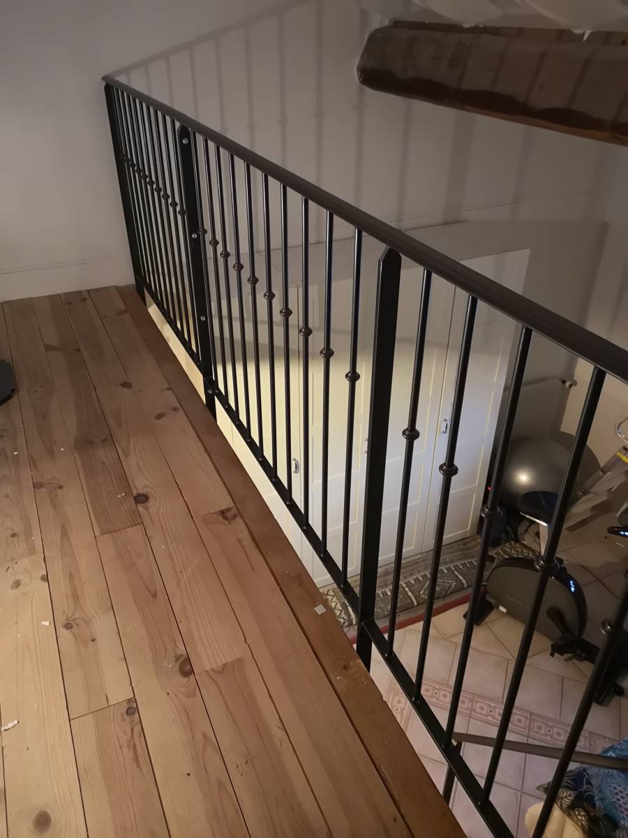 Nous avons réalisé pour le compte d'un client sur la commune de Craponne, un escalier sur mesure pour permettre l'accès à leur mezzanine. Pour sécuriser cette dernière, nous avons également créée des garde-corps pour la fermer. Les normes sont respectées afin qu'un enfant ne puisse pas l'escalader ou passer au travers des barreaux. Nous avons du nous adapter aux dimensions de la pièce et la fabrication sur mesure est la meilleure chance pour obtenir un résultat harmonieux.