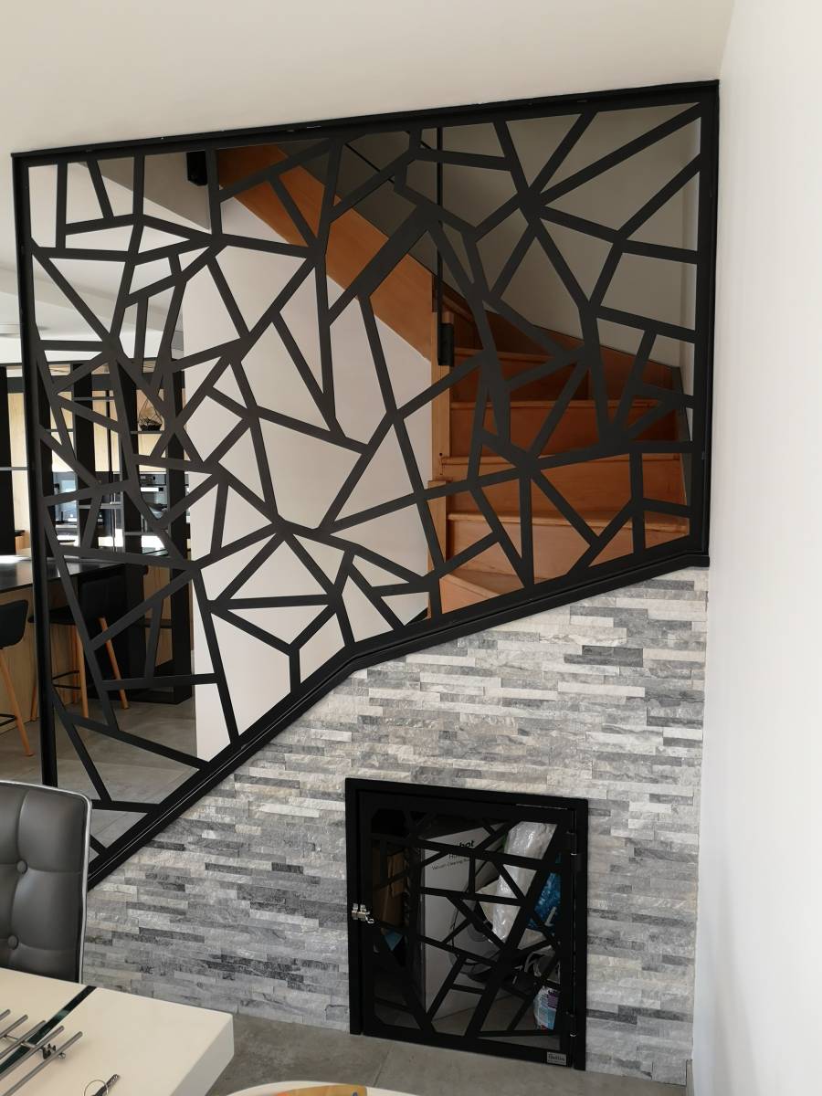 Nous sommes intervenus pour le compte d'un client à Brindas pour lui réaliser un garde-corps d'escalier sur mesure, qui part du bas de l'escalier jusqu'au plafond. La sécurité est complètement assurée et l'escalier prend une toute autre allure. Une petite porte qui donne accès sous l'escalier nous a également été demandée sur le même motif que le garde-corps.